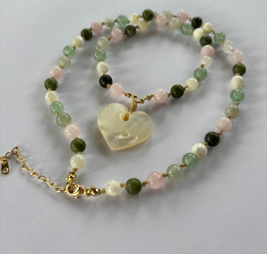 Raindrop Serpentine Pounamu Pendant on Jade Beaded Necklace